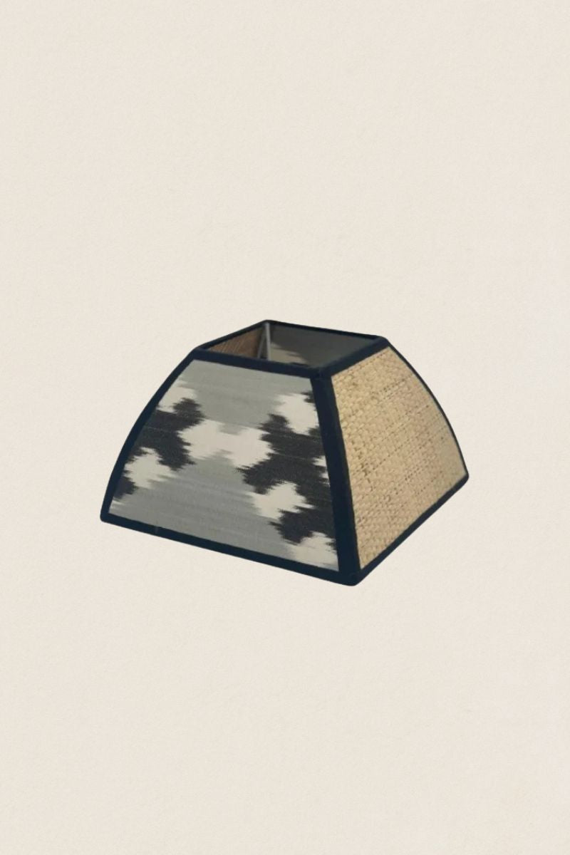 Pantalla cuadrada trapecio de seda y rafia con cinta de algodón.