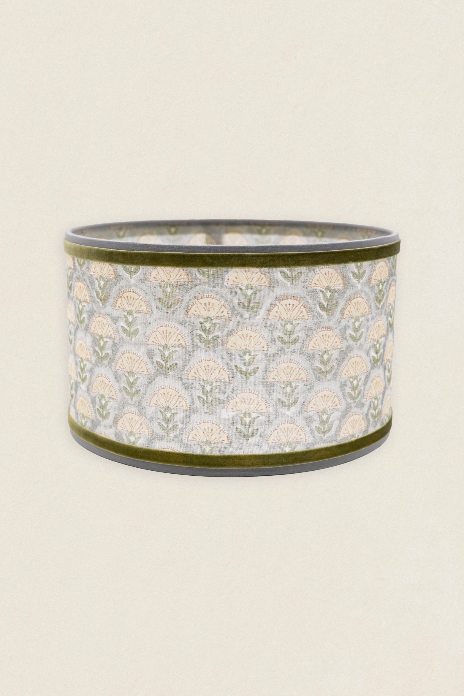Pantalla cilindro de seda con acabado en cinta de terciopelo.