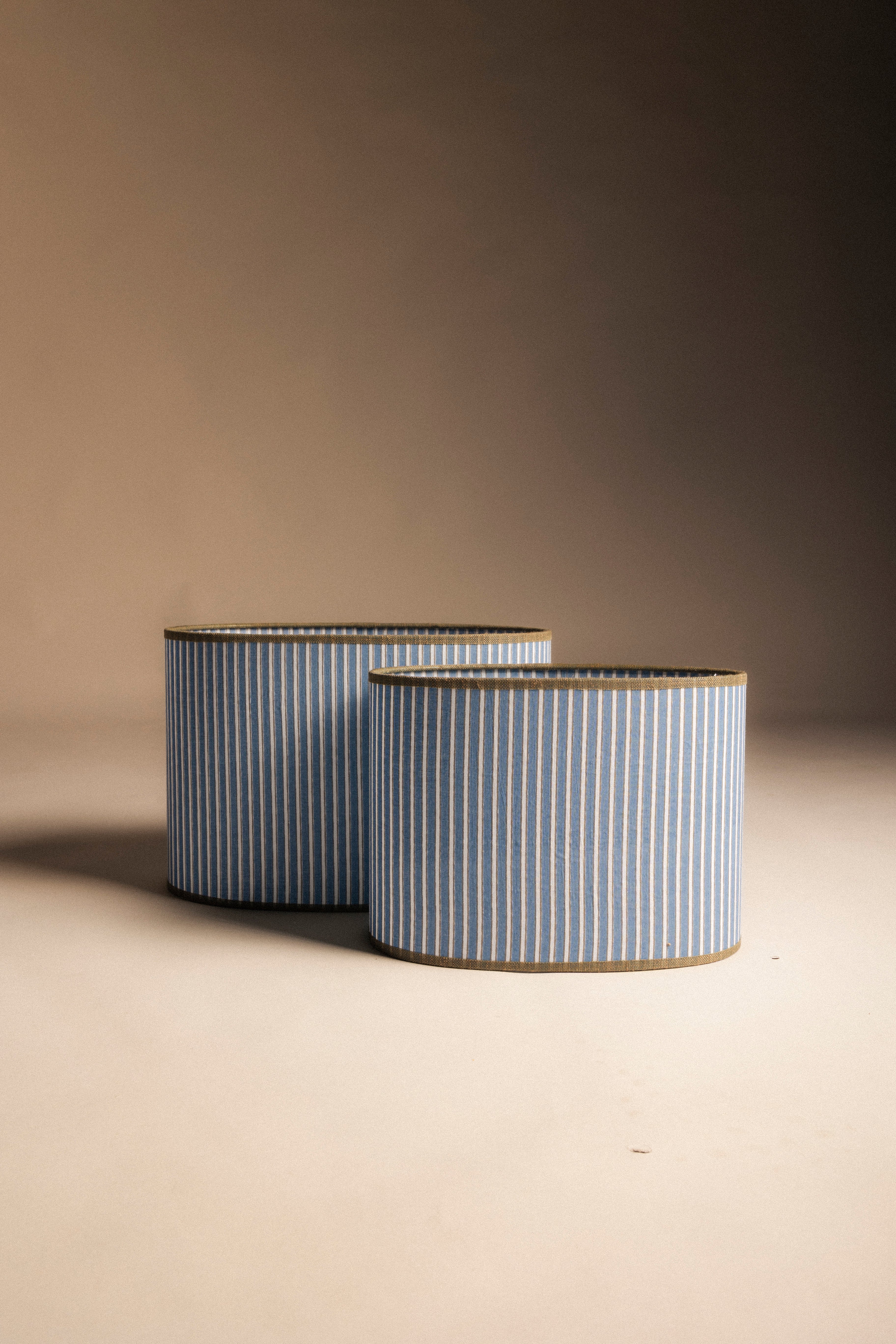 Pantalla ovalada de algodón con acabado en cinta de lino.