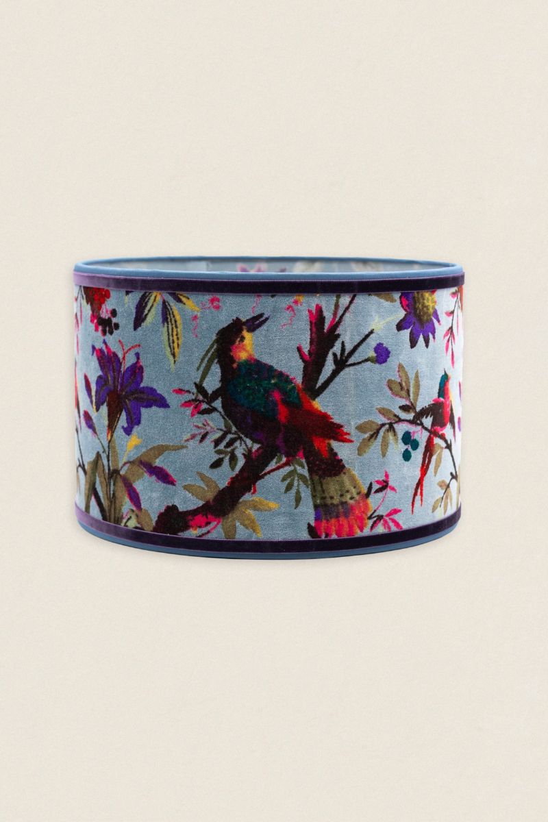 Pantalla Cilindro de terciopelo, acabado con cinta terciopelo.