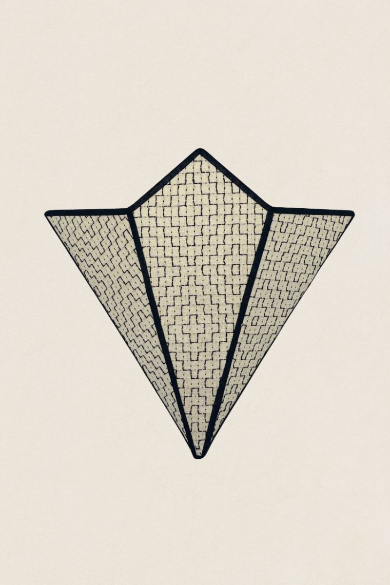 Cotton appliqué embroidered with cotton ribbon.