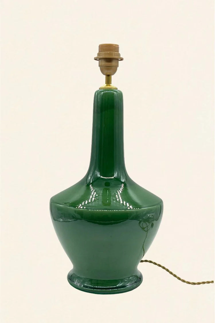 Pied de lampe en céramique émaillée avec douille plaquée or et câble en soie.