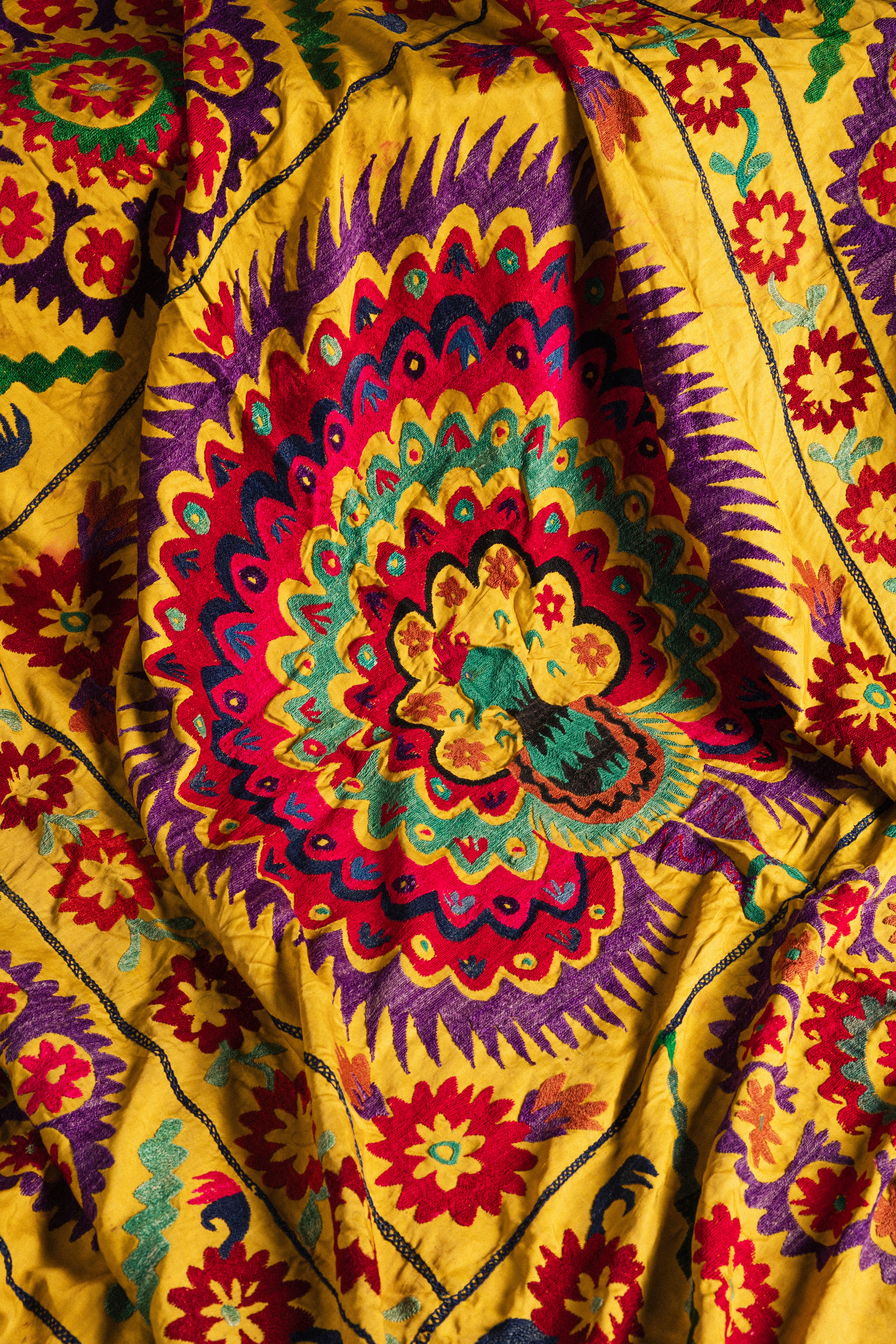Suzani ancien brodé à la main. Design unique.