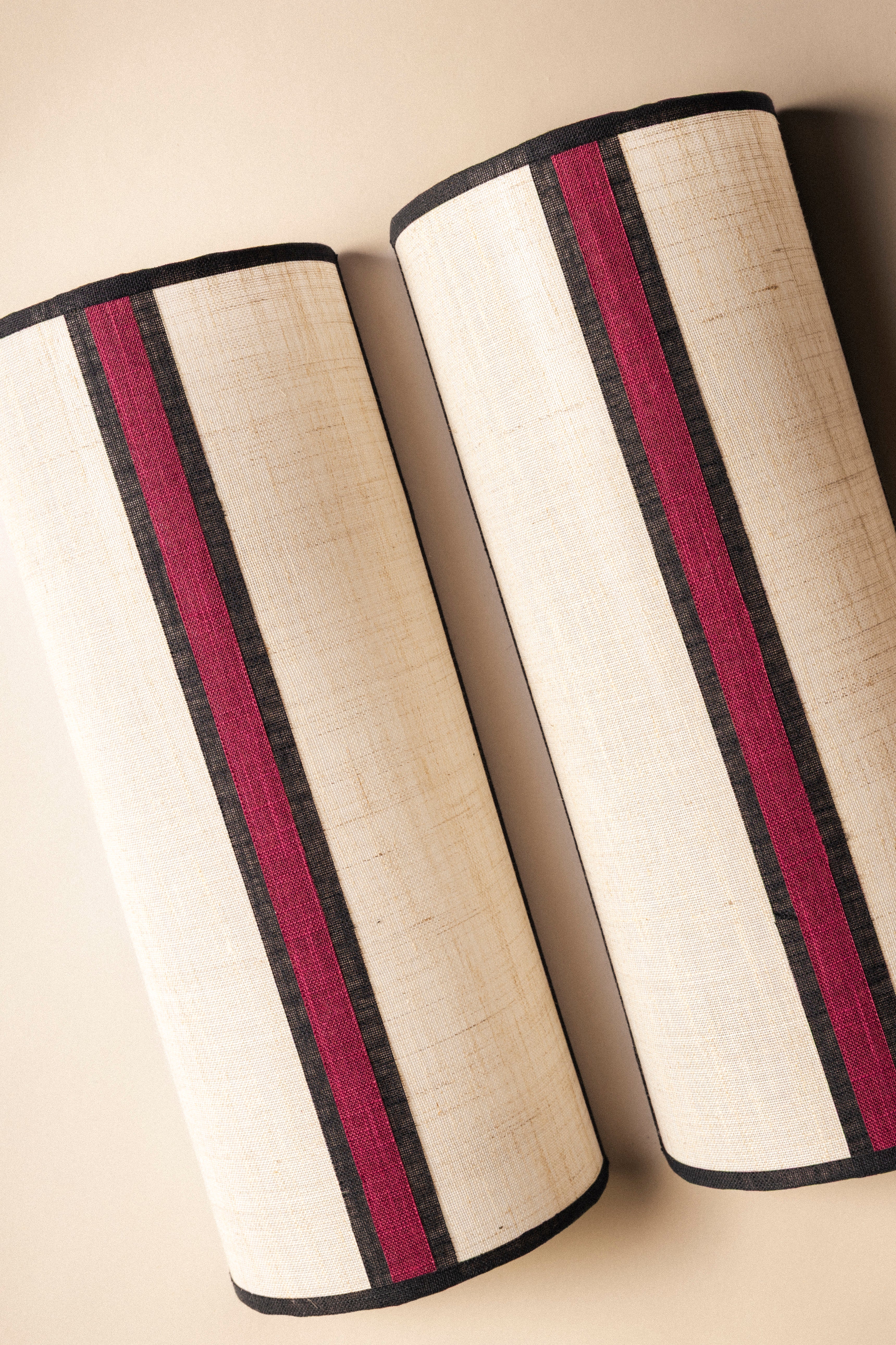 Aplique elaborado con tejido de lino y acabado en doble cinta de lino.