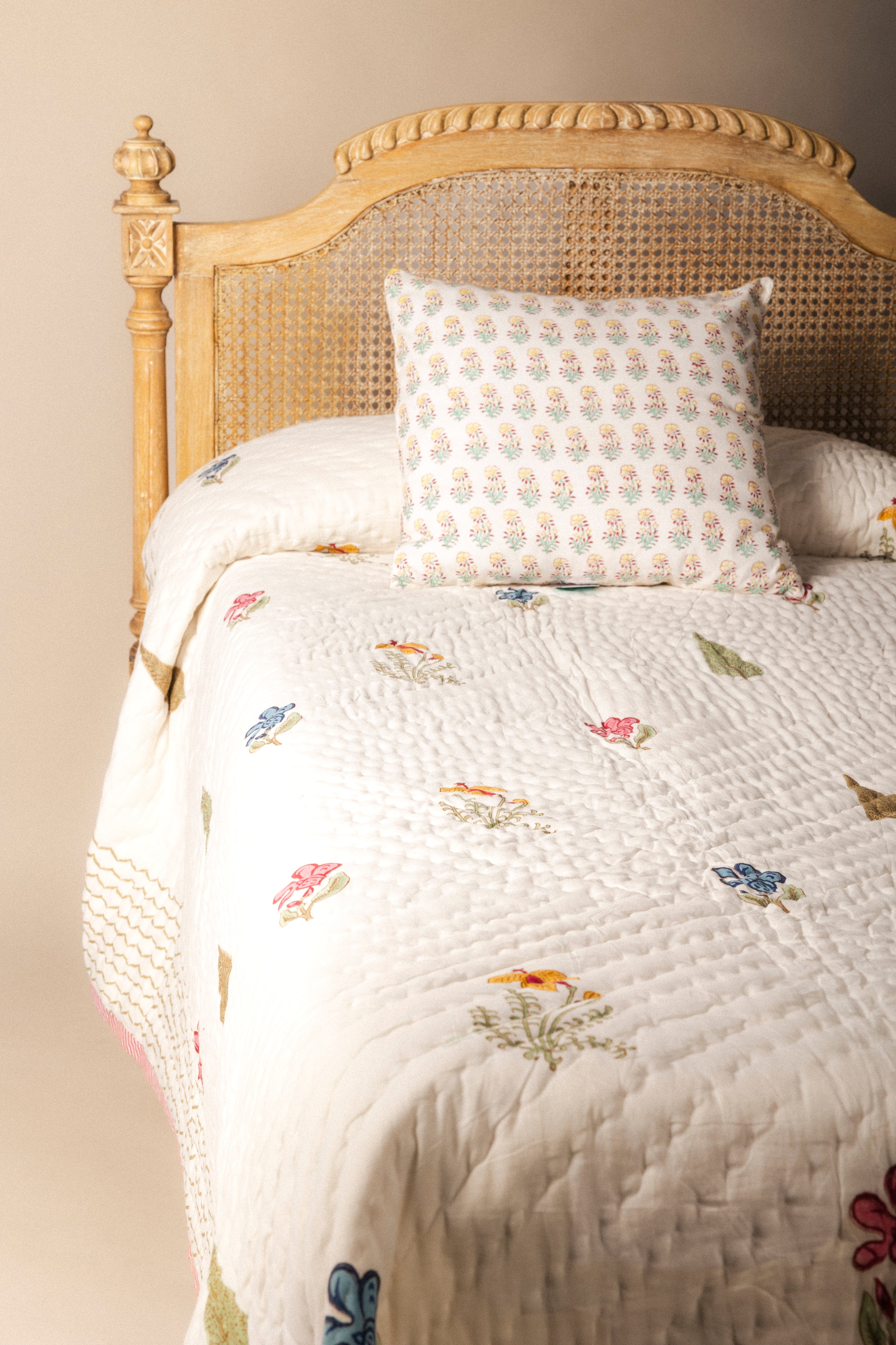 Colcha Edredón reversible 100×100 algodón. Relleno con guata.