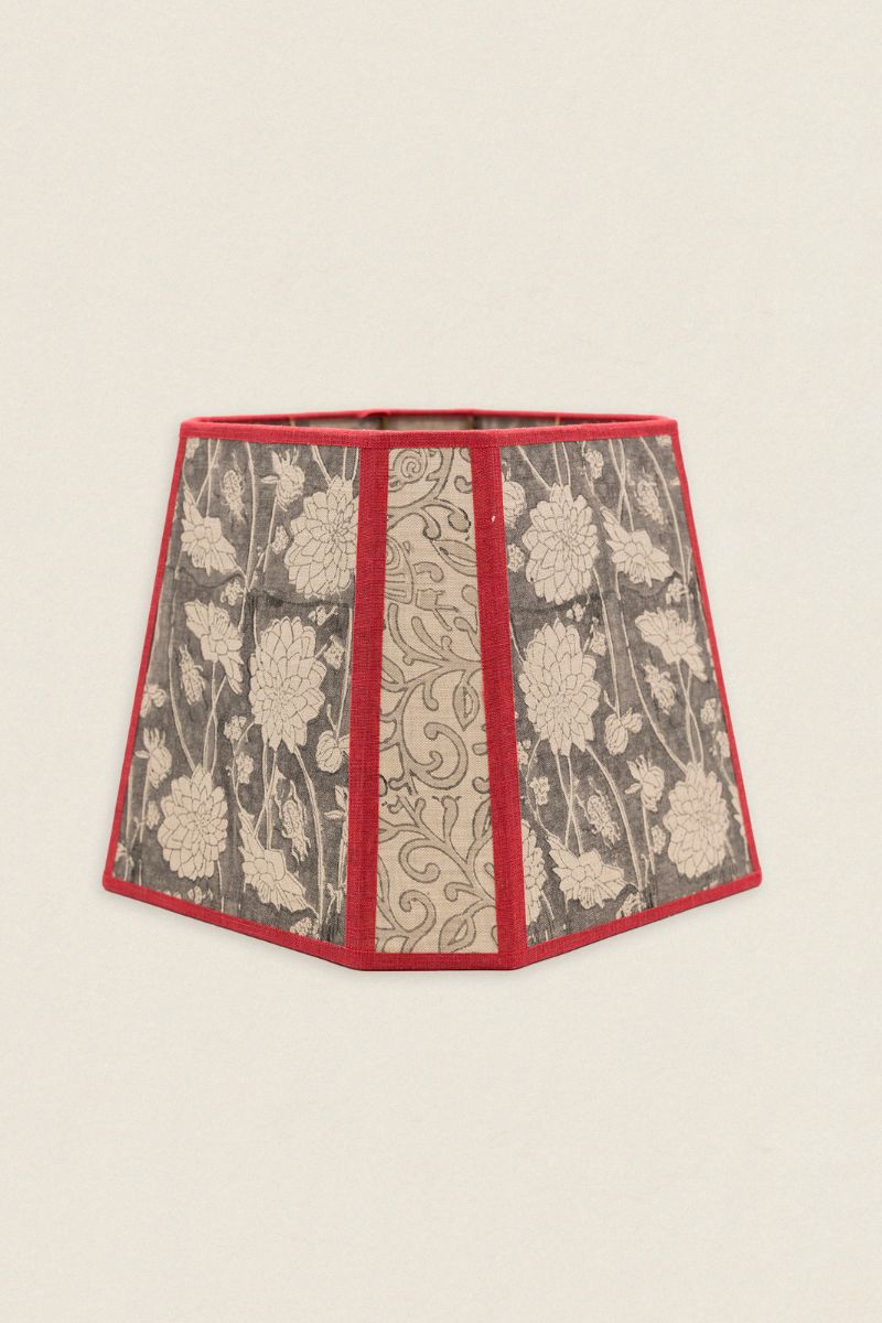 Pantalla hexagonal de algodón, acabado con cinta de lino